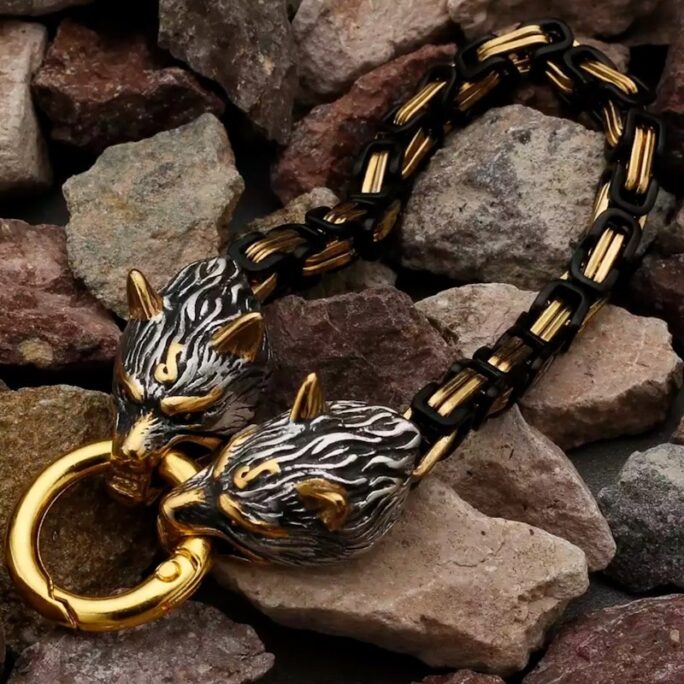 Select options This product has multiple variants. The options may be chosen on the product pageVikingarmbånd ulvehode svart og gull