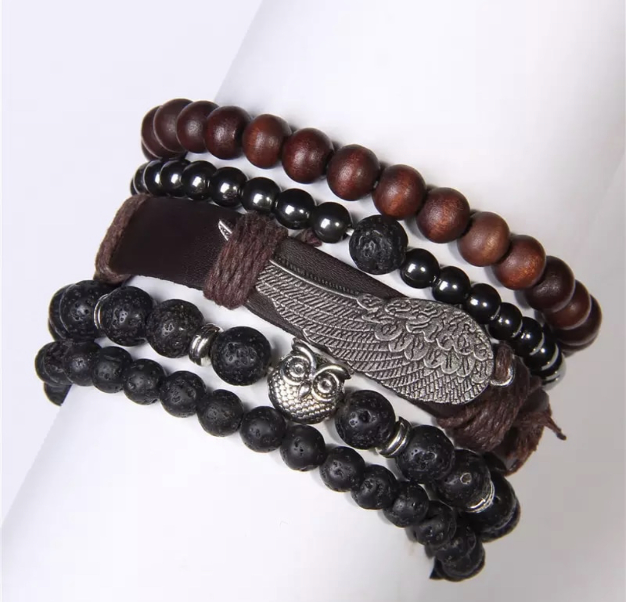 5 Håndlagede perlearmbånd med naturlige steiner. Kan brukes sammen eller hver for seg.