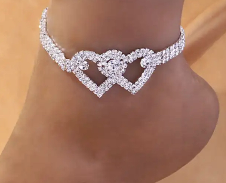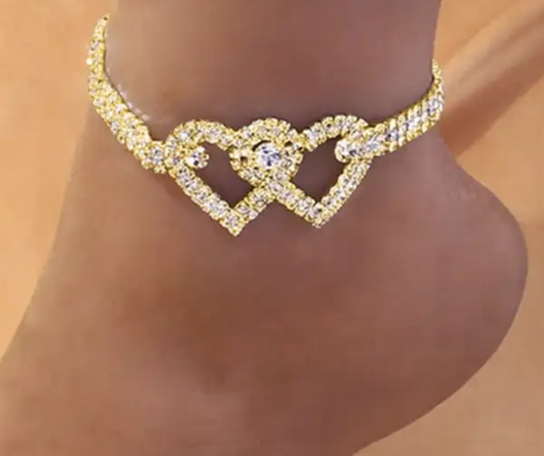 Lekker ankellenke med høy blingfaktor. Doble hjerter og strass hele veien.
