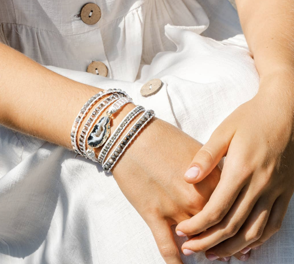 Håndlaget perlearmbånd med naturlige steiner, justerbar lengde og høy blingfaktor.