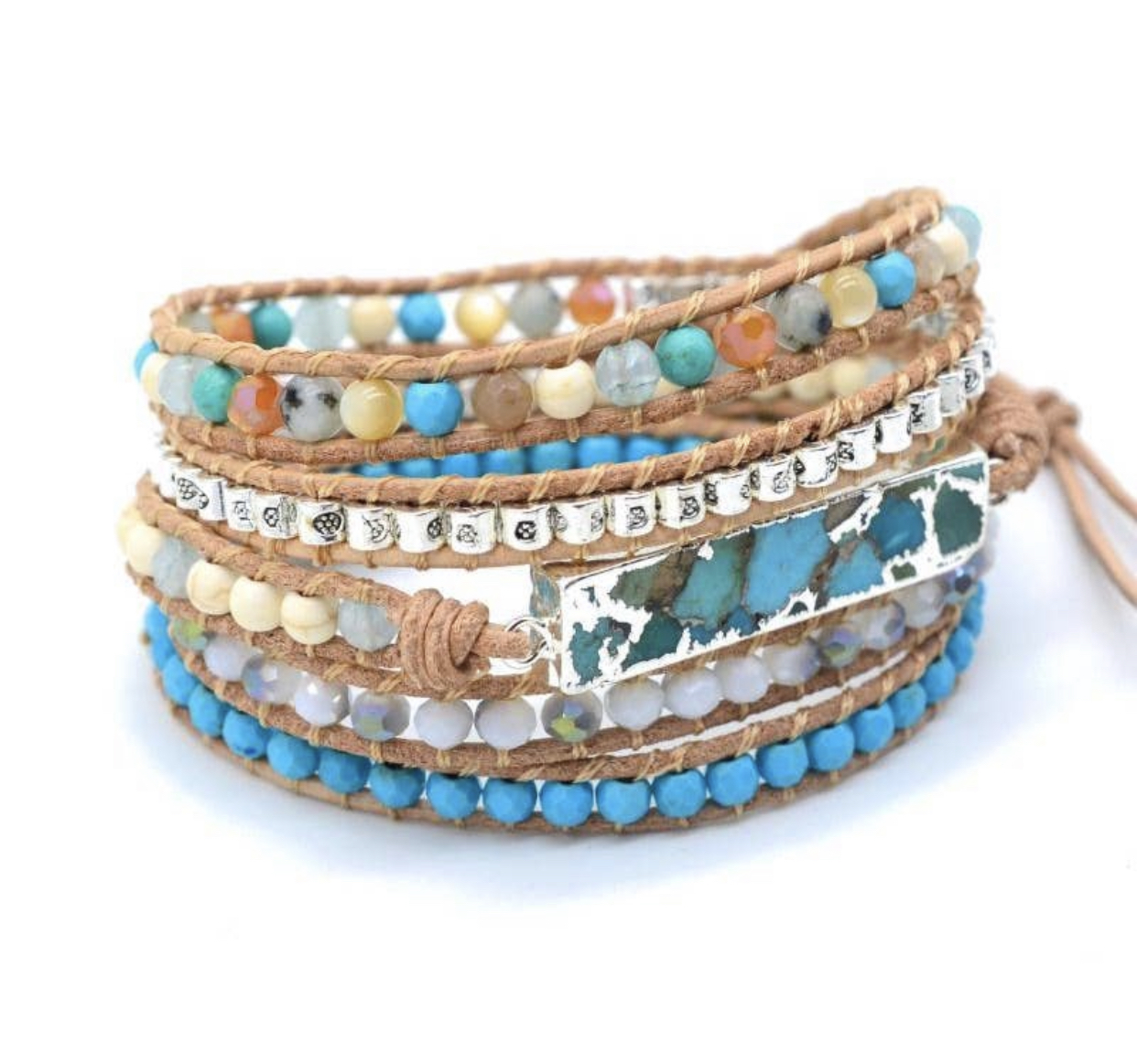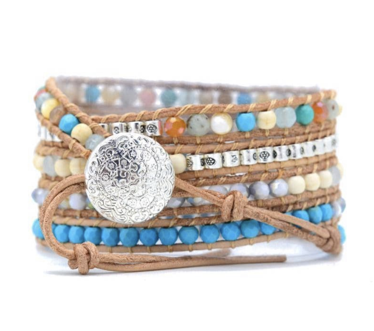 Håndlaget perlearmbånd med naturlige steiner, justerbar lengde og høy blingfaktor.