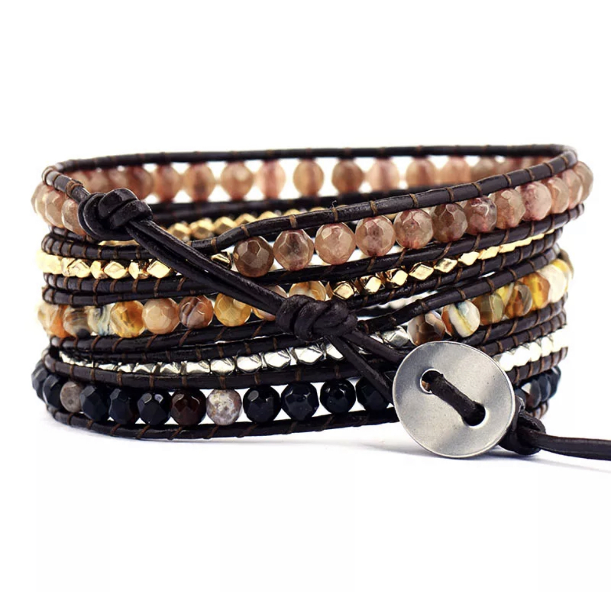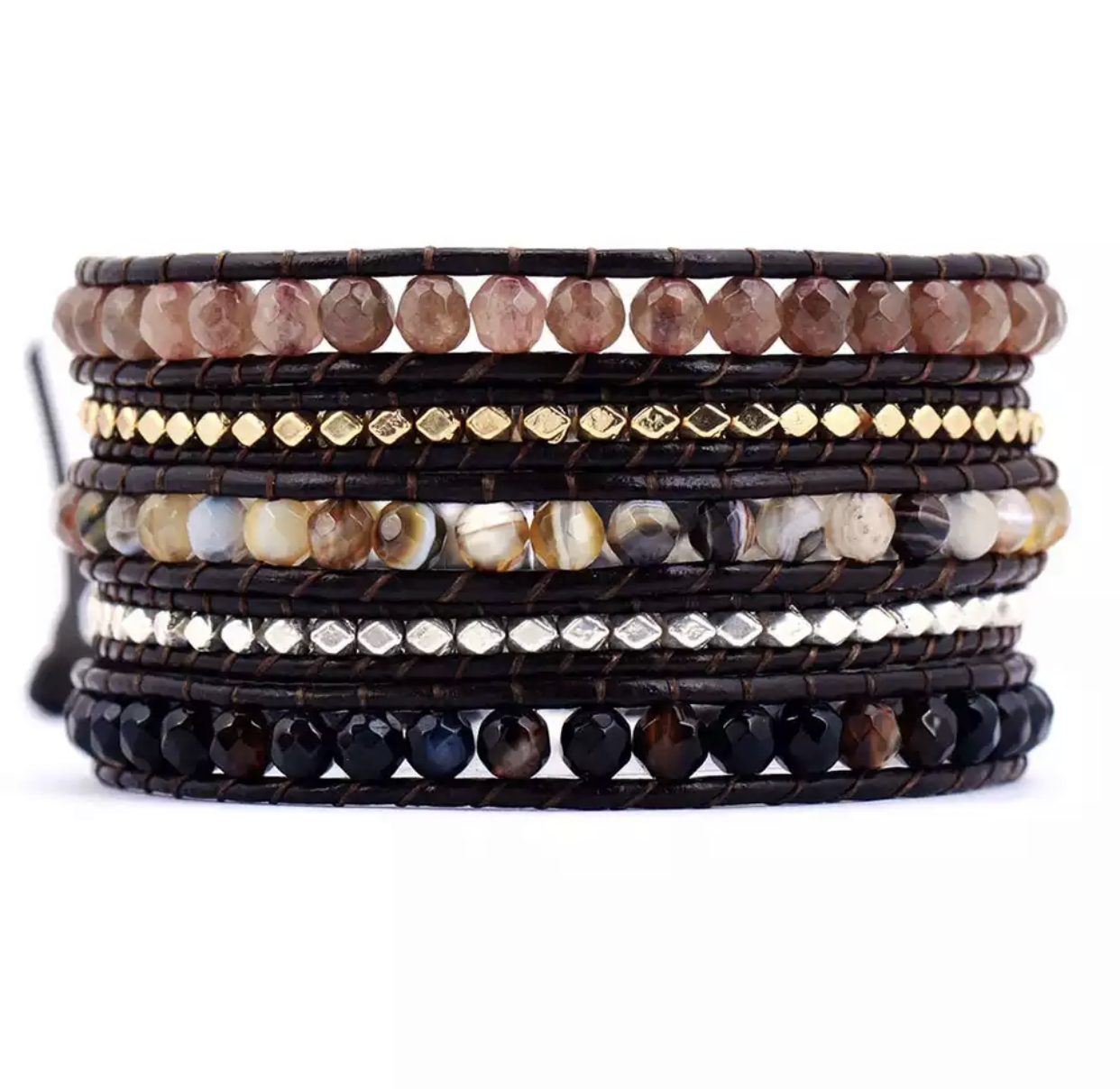 Materiale: Naturlige steiner mix av Onyx og metallperler, skinnreimer