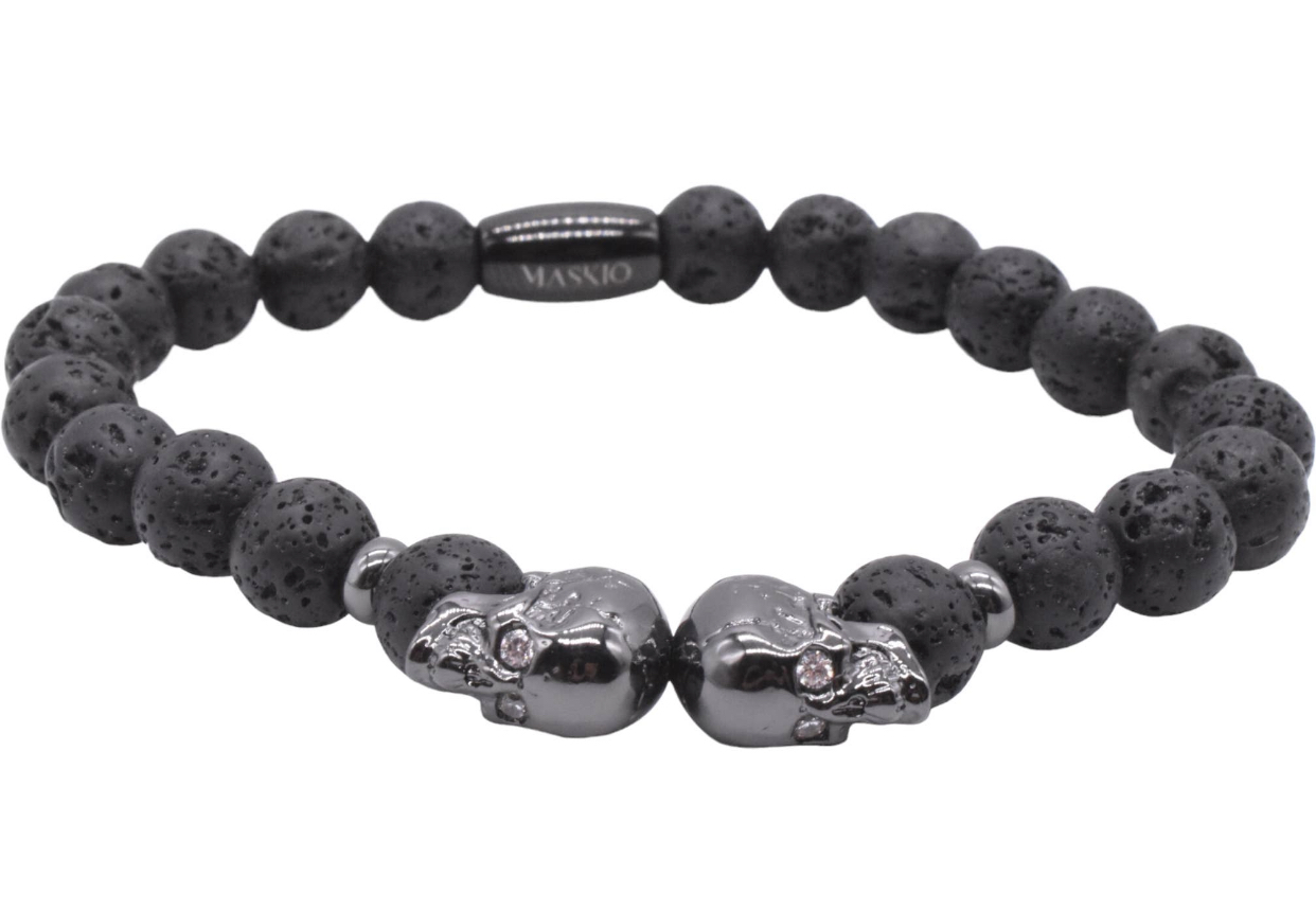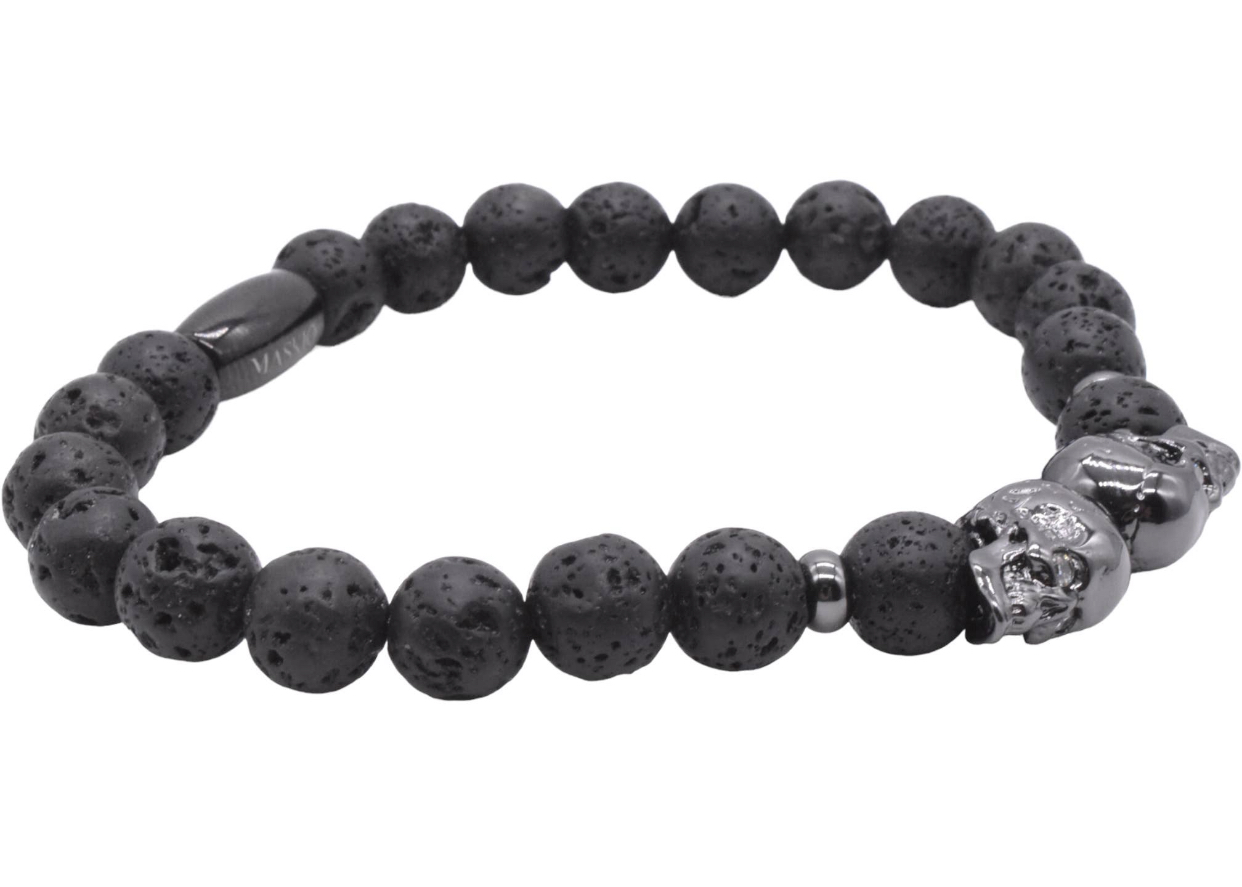 Armbånd i svart lavastein med skaller i rustfritt stål. Lavastein står for styrke og mot. Flott å bruke for seg eller sammen med andre favoritter.