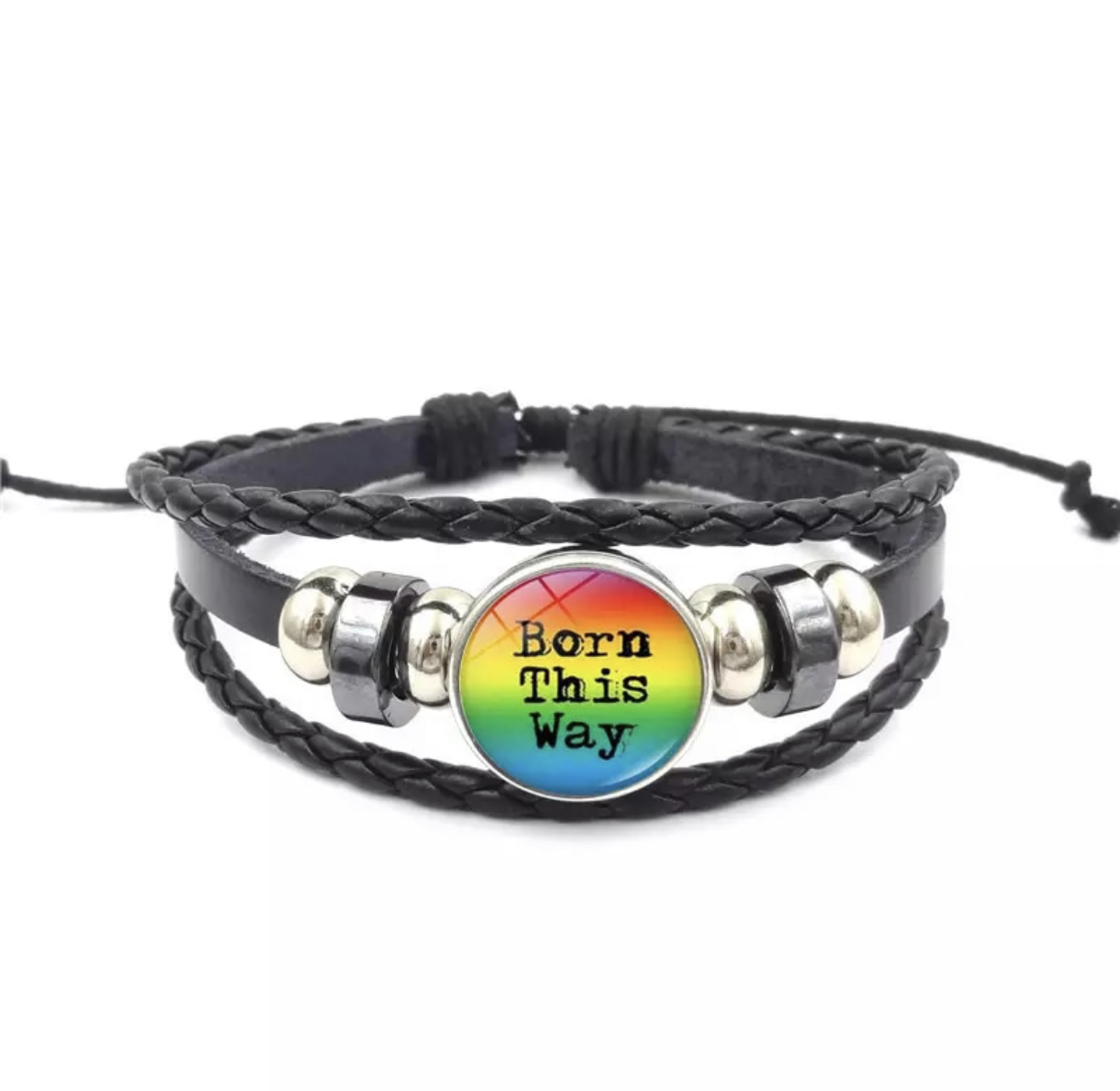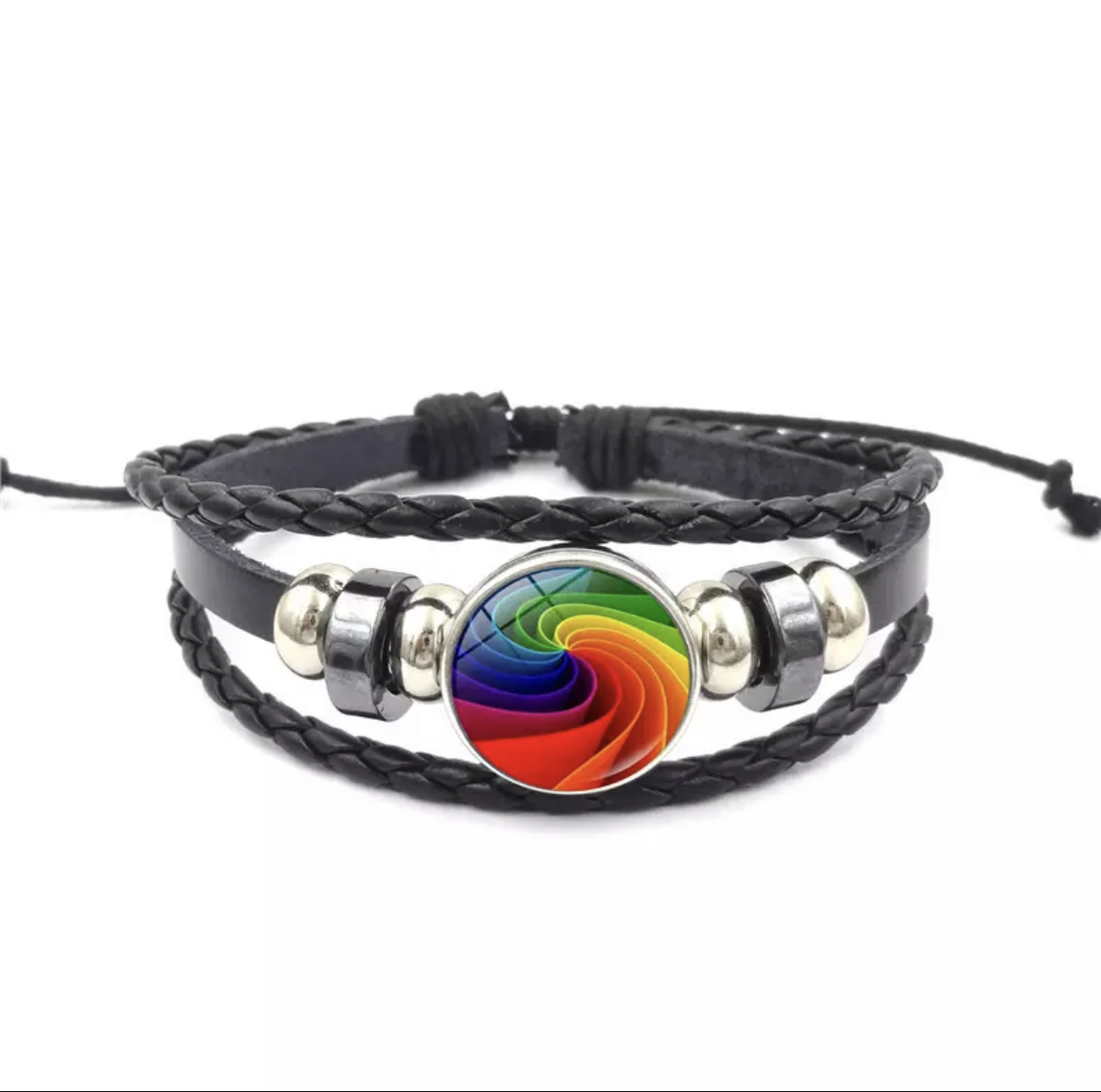 Regnbueflagg LGBT skinnarmbånd med Pridedekor. Håndlaget i vintagestil. Representerer respekt, toleranse og likeverd, fellesskap, solidaritet og samhold – og ikke minst friheten til å definere egen identitet, kjærlighet og seksualitet.