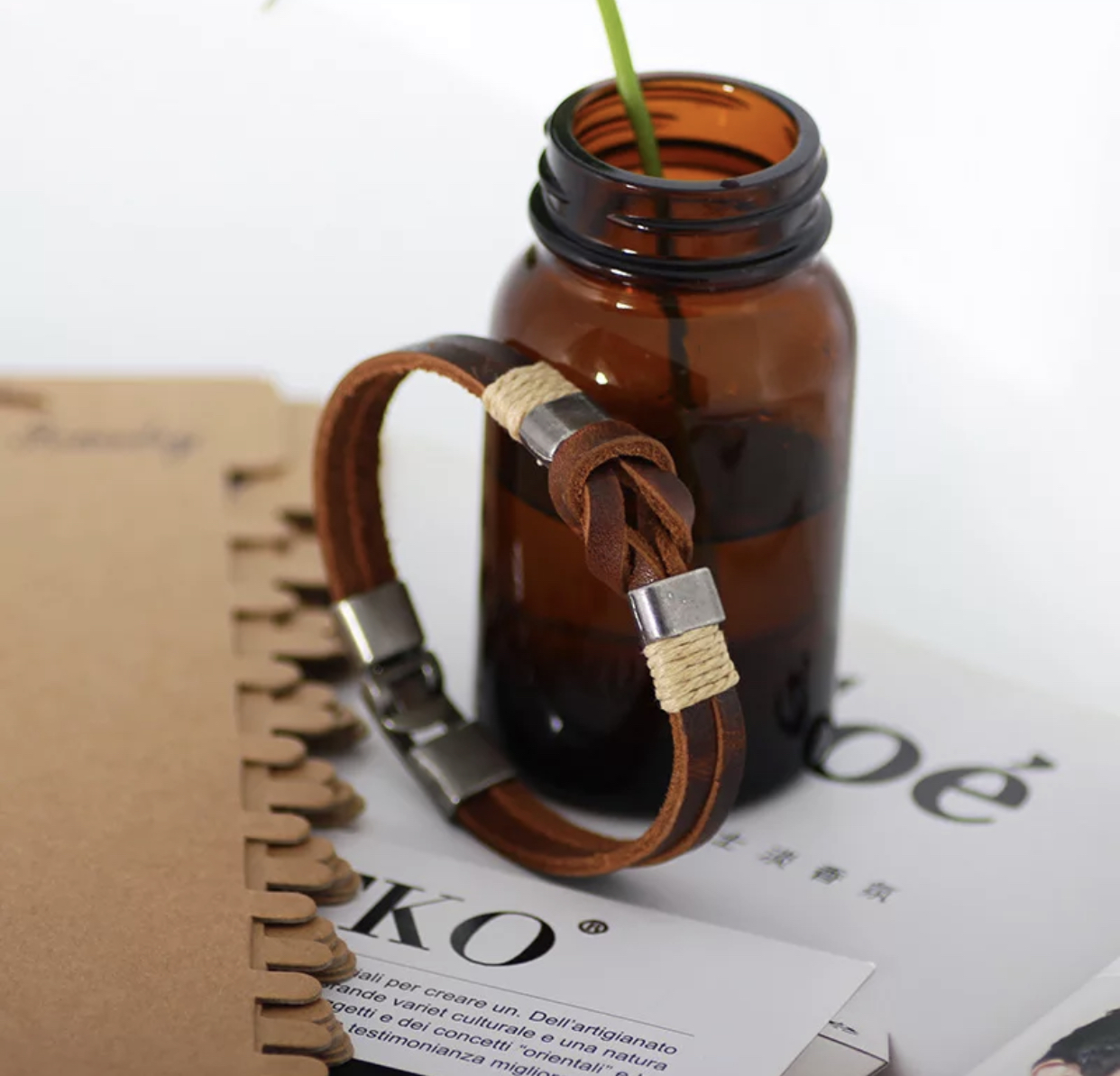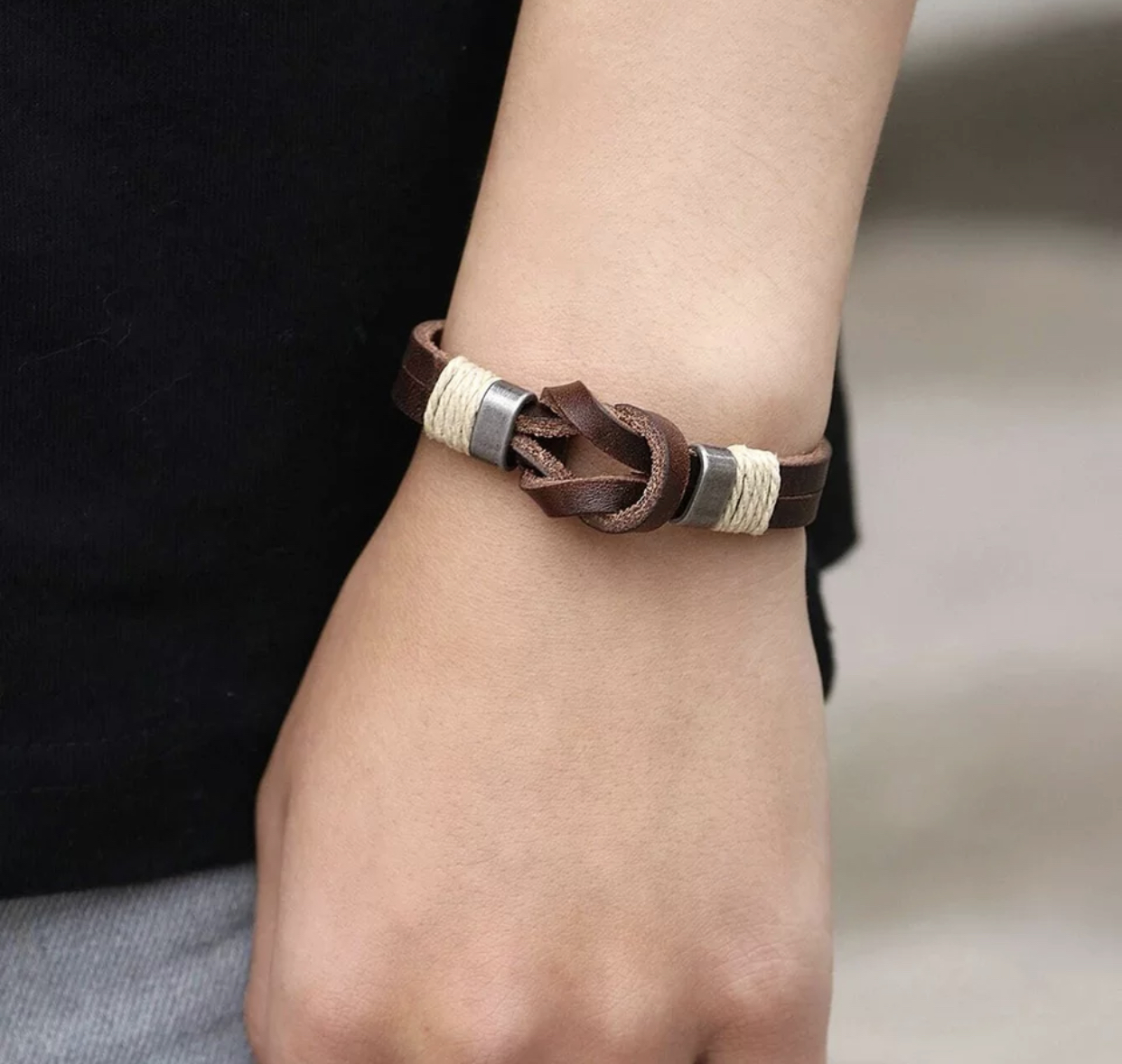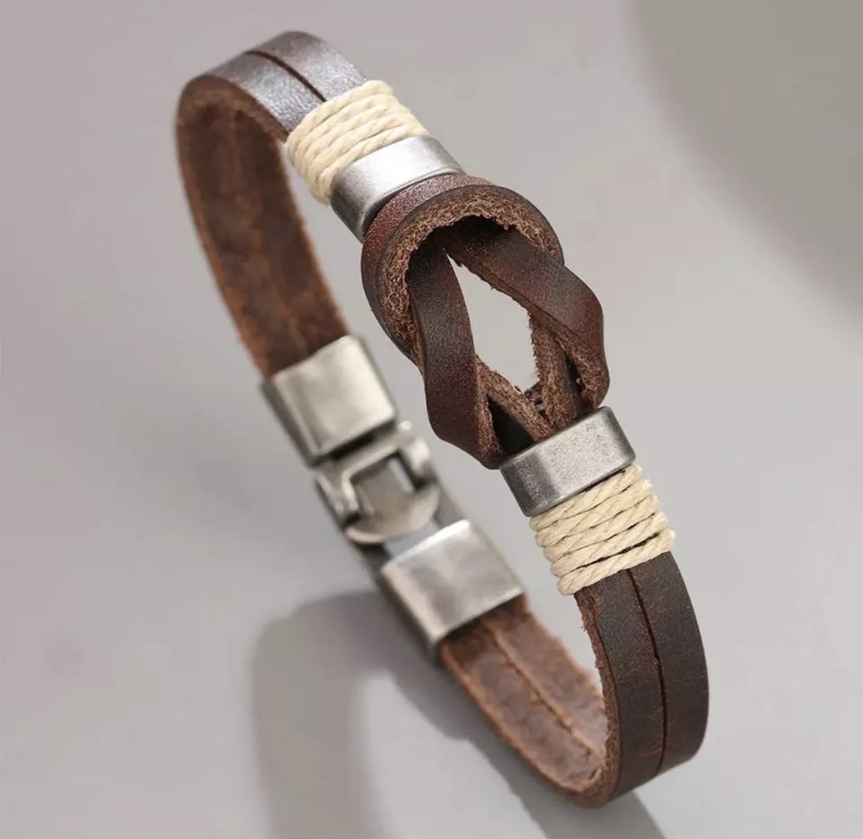 Armbånd i brunt skinn med løkke med enkel metalldekor