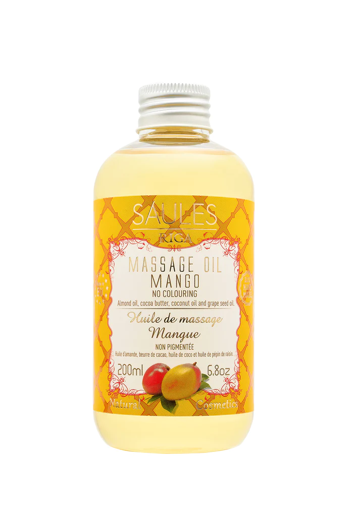 Massasjeolje med aroma av mango er det gode middelet for å bekjempe tretthet og stress. Naturlige ingredienser utøver maksimal pleie av huden din. Kakaoolje vil svøpe med fornuftig velduftende, mandelolje vil myke og berolige, kokosolje vil fukte og fornye, druekjerneolje vil mette med gunstige stoffer og gi glatthet.