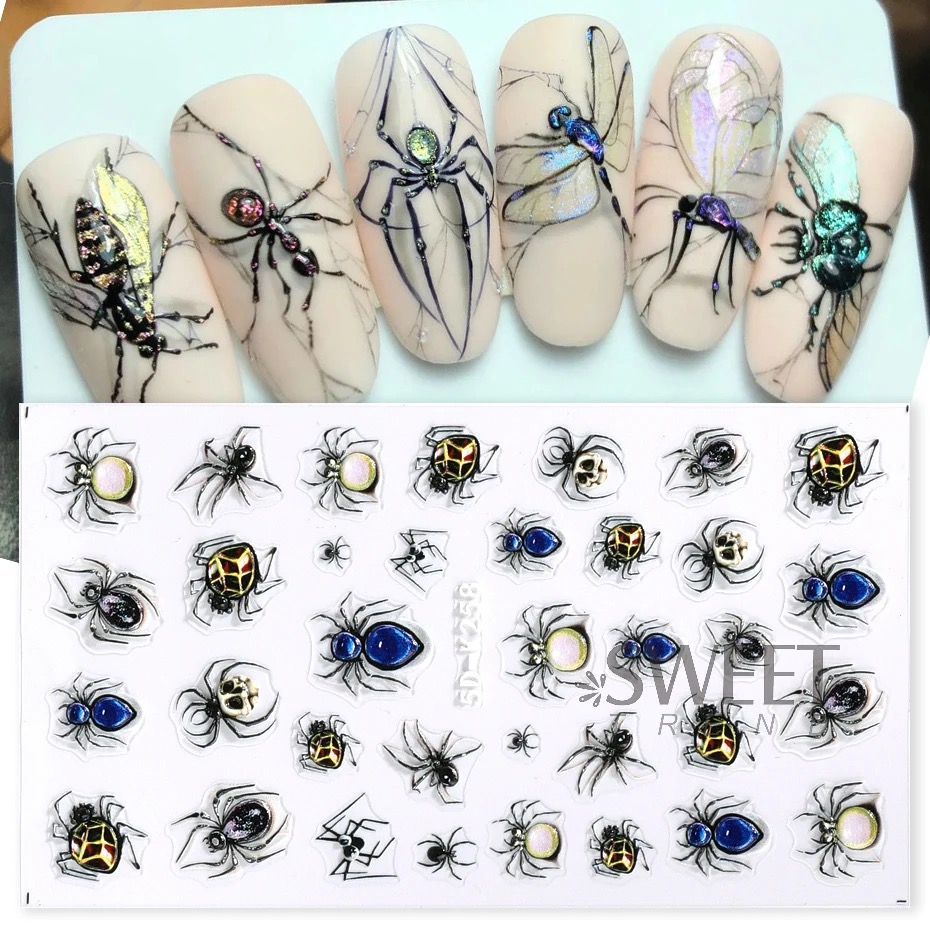 Pynt neglene litt ekstra med disse dekorative 5D neglestickersene med ulike edderkopper. Kan legges på neglelakk, shellac, gele og akryl. Dette er for deg som liker det litt annerledes og for deg som vil ha det skumleste negledekoret til Halloween.
