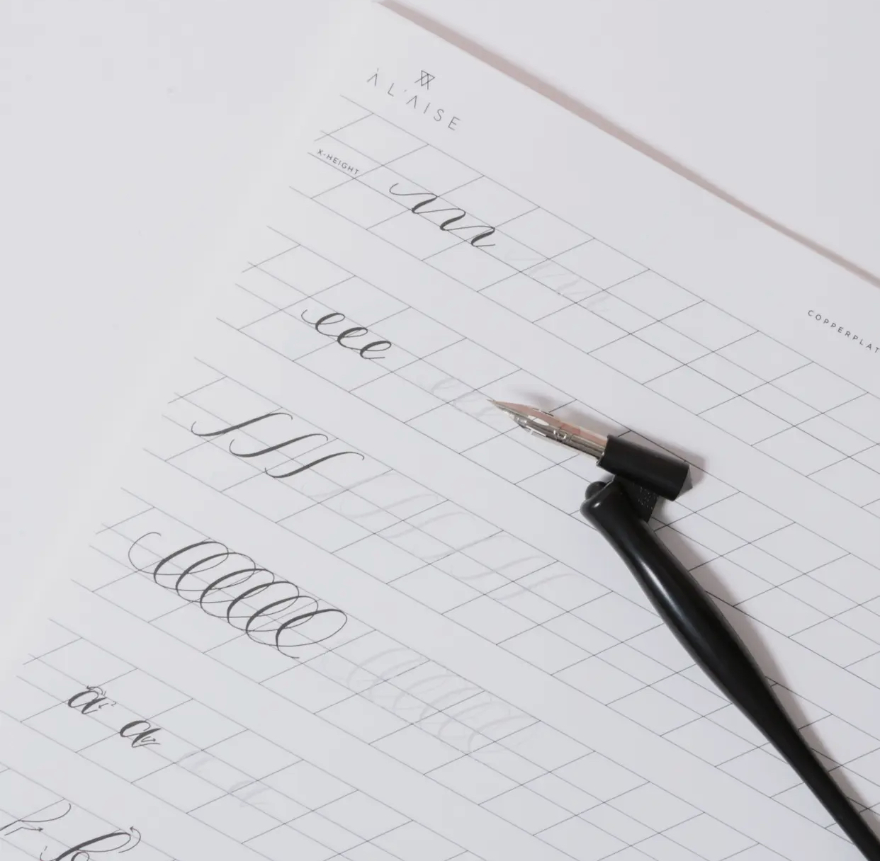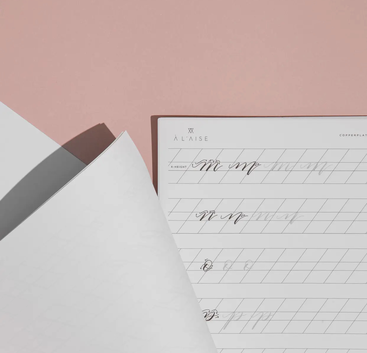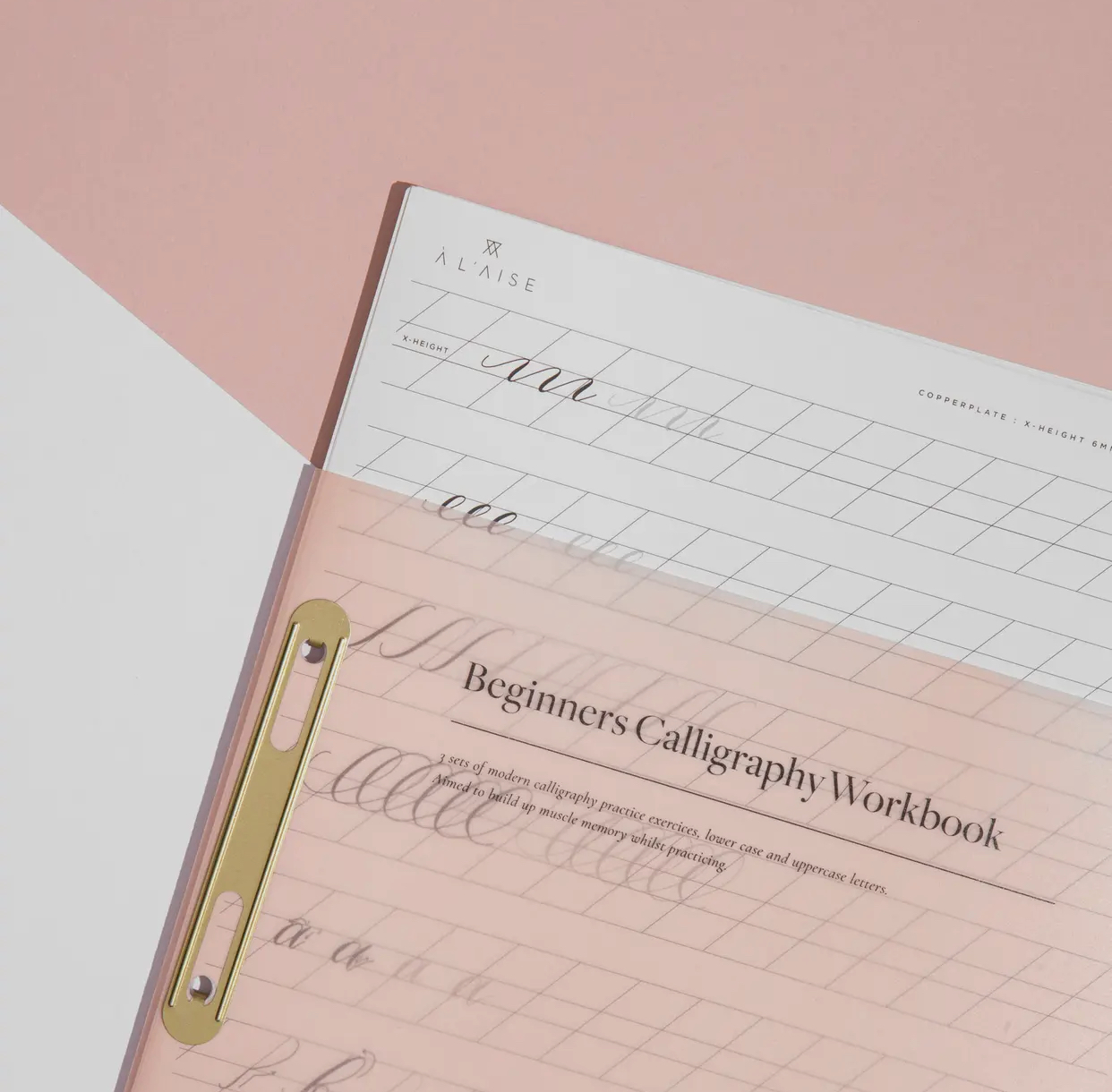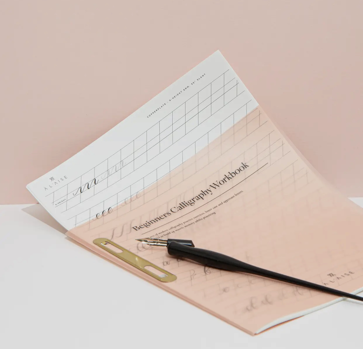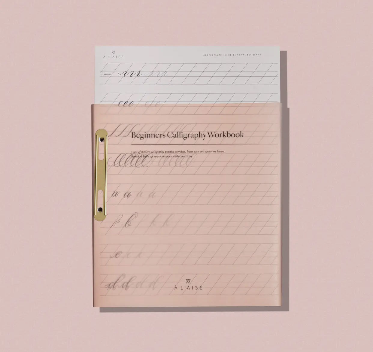 Øvingshefte i moderne kalligrafi for nybegynnere. En viktig øvelsesbok for enhver spirende kalligraf med nybegynnerøvelser, små og store bokstaver, samt og-tegnet. Disse guidearkene hjelper deg med å bygge opp muskelminnet ditt, som er en viktig måte å lære og bygge opp kalligrafiferdighetene dine på.