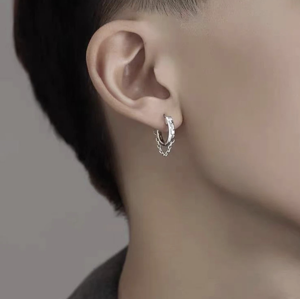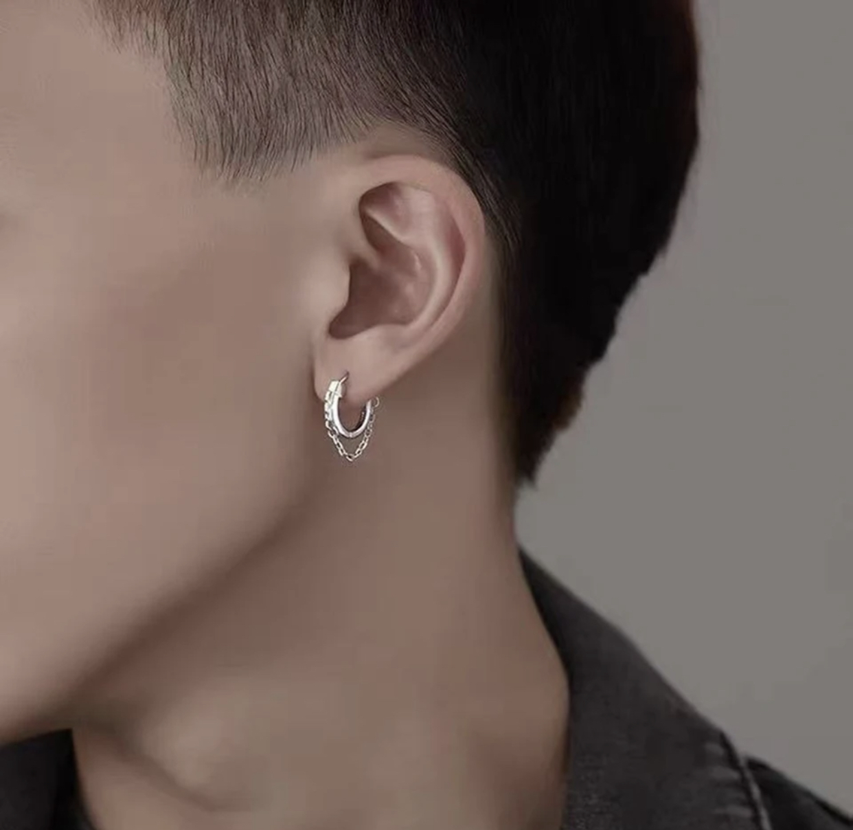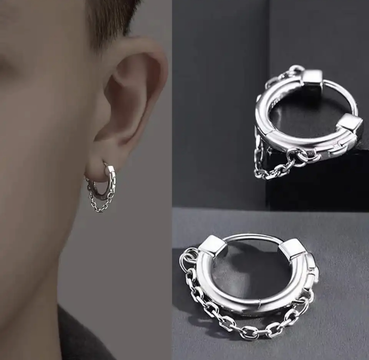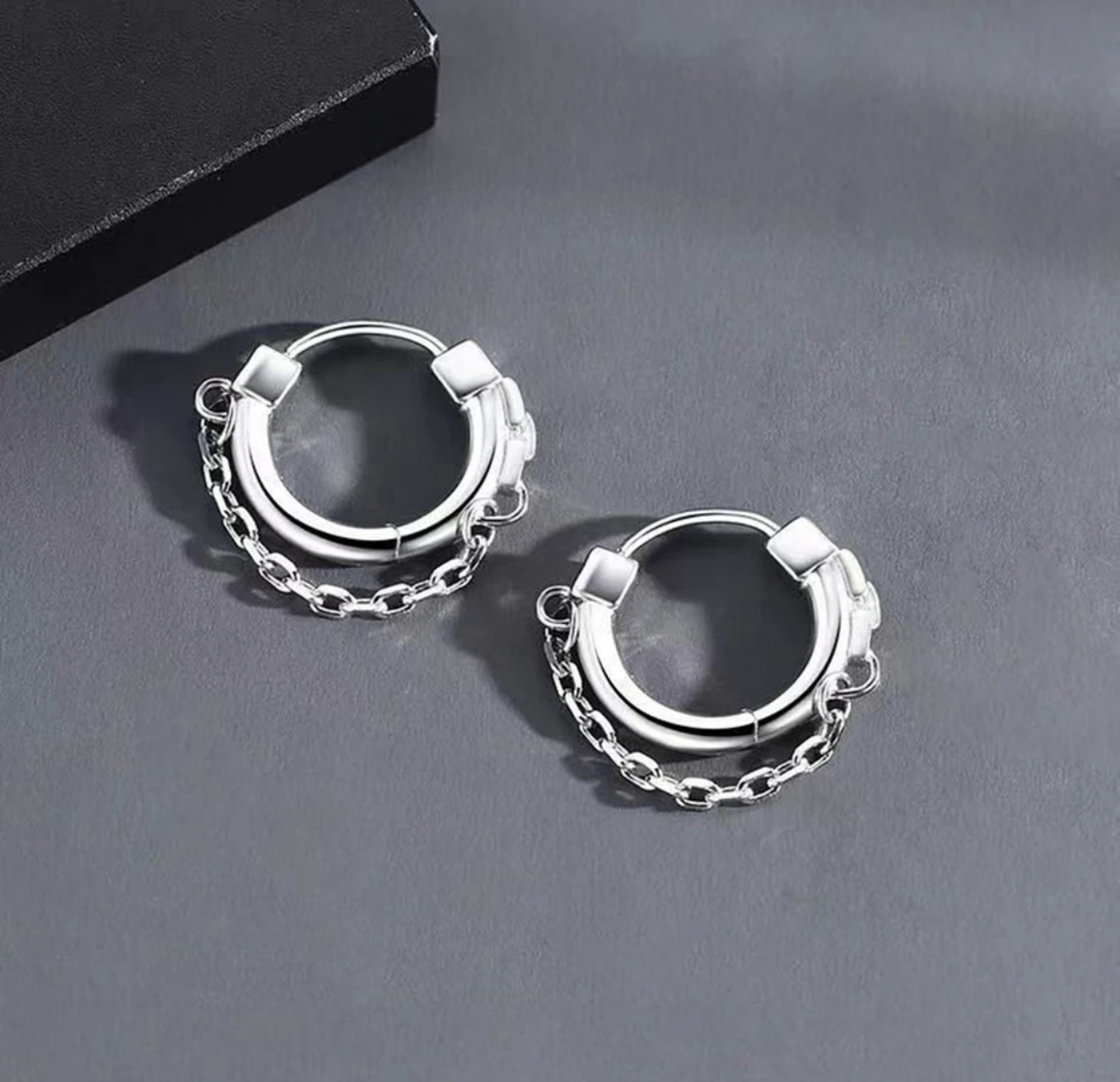 Tøffe øreringer i sølvbelagt metall med lenke. Unisex og noe for deg som er den litt barske typen. Øreringene selges i par.