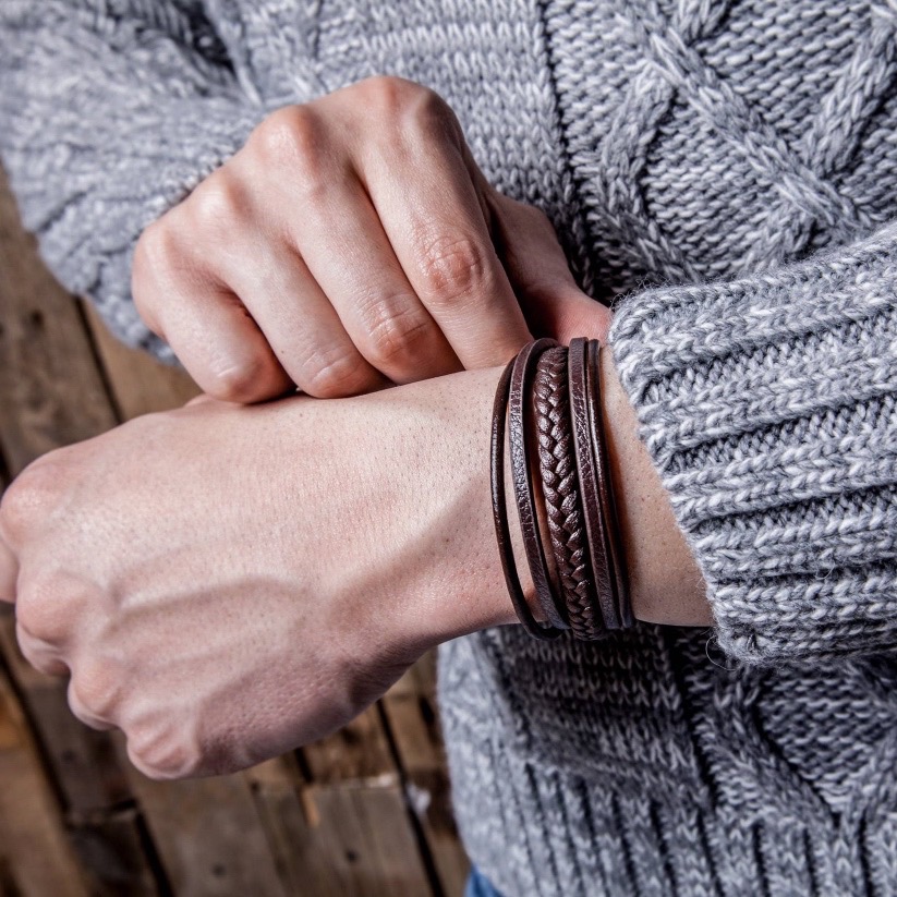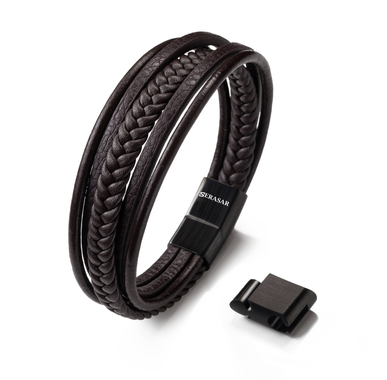 Svart lærarmbånd med flette og magnetisk lås fra Serasar. Mulighet for å justere på lengden med avtagbar del i låsen. Enkelt men tøft armbånd.