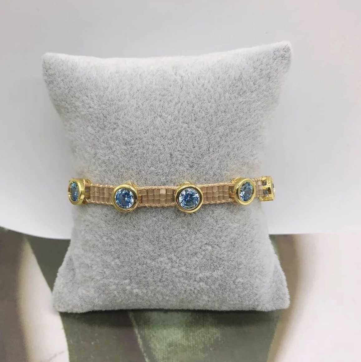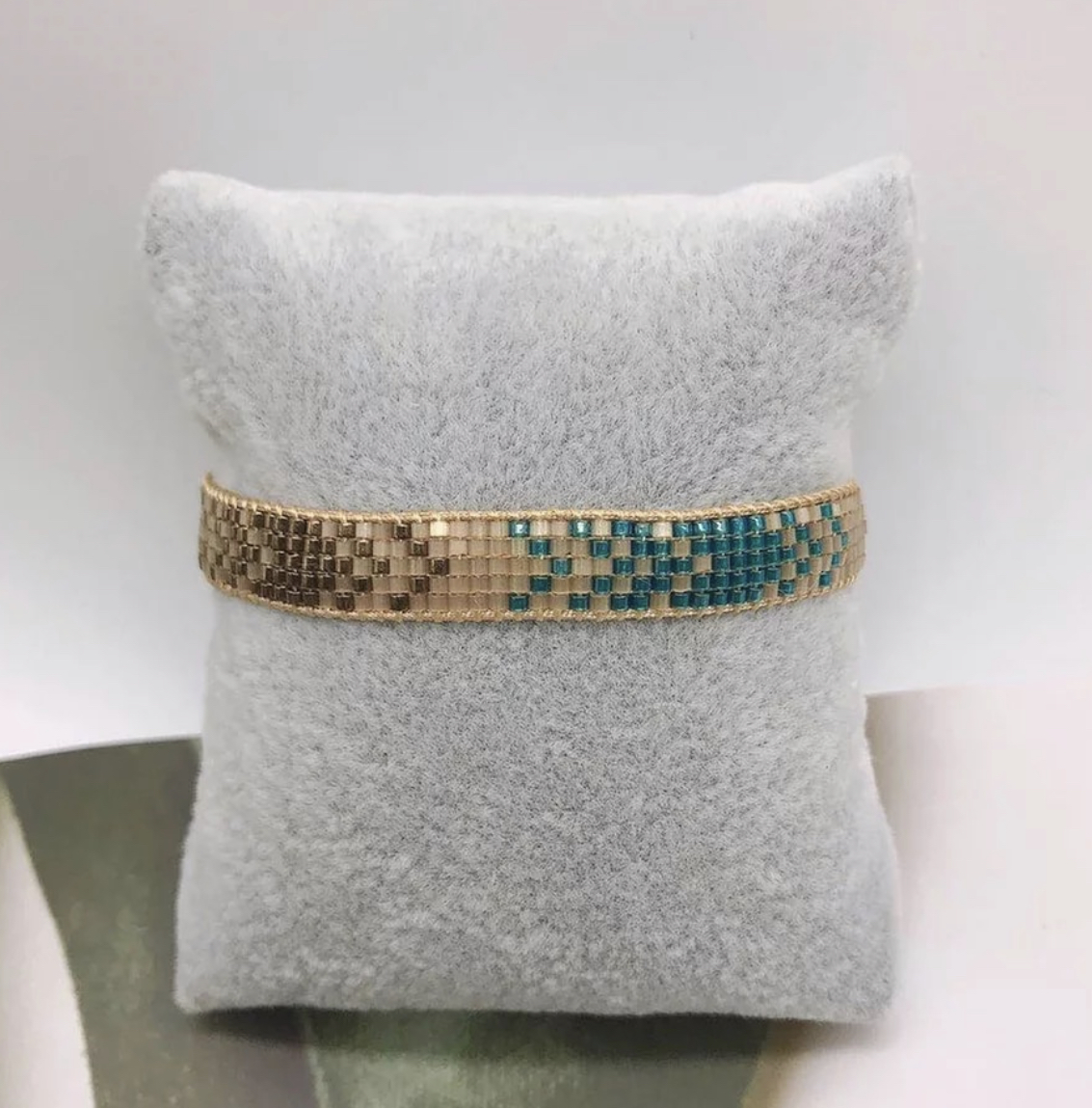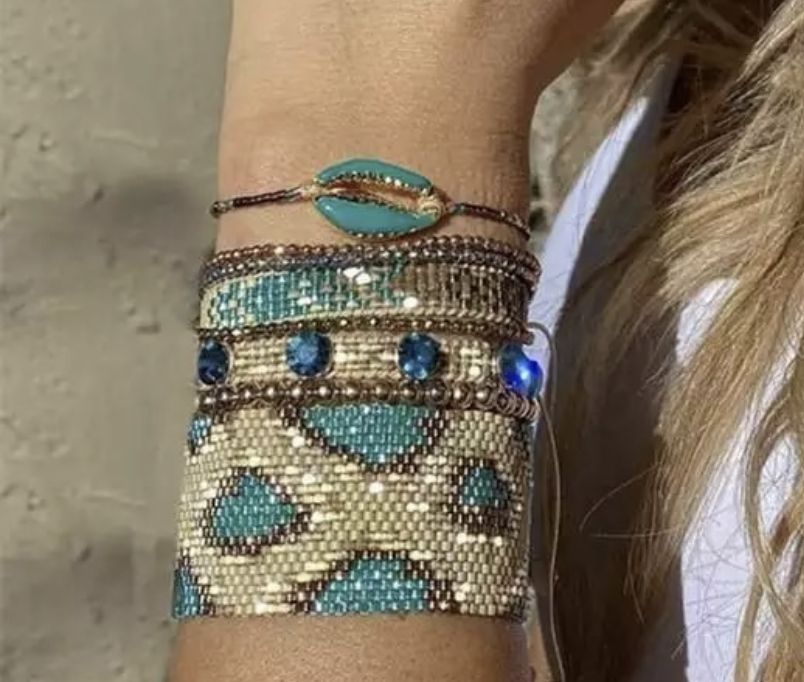 Størrelser: Det største har 2,5 cm x 8 cm med perler i leopardmønster, neste er 0,9 x 12 cm med perler, øvrige er som på bildet. Alle armbånd er justerbare, gullperlene er med strikk.