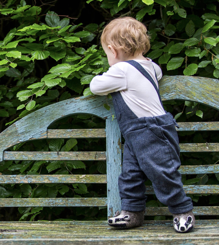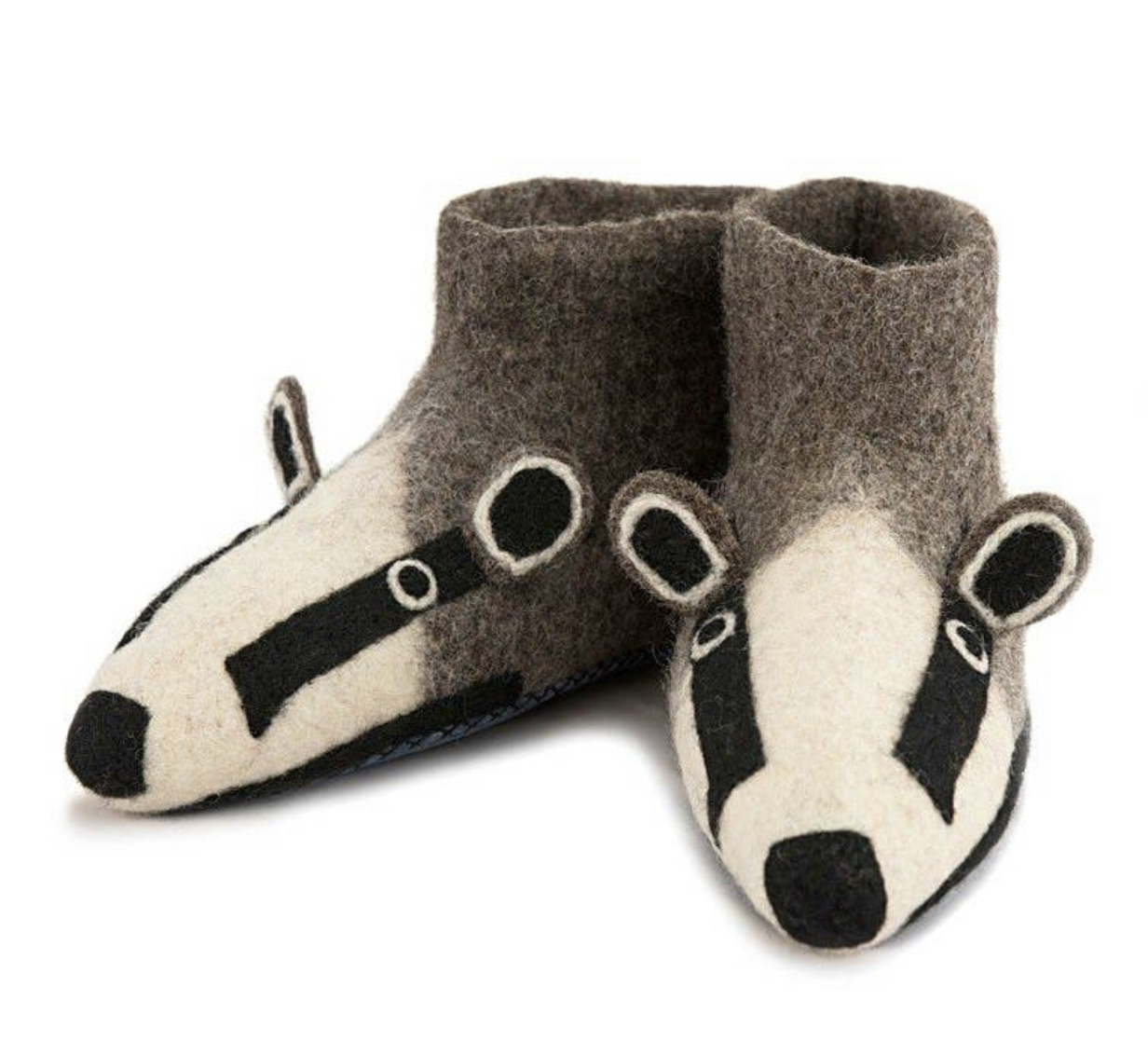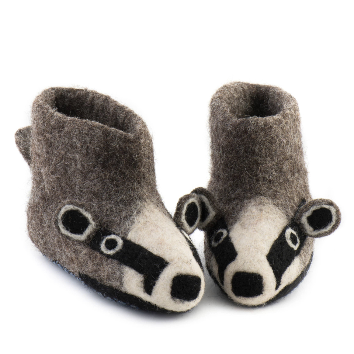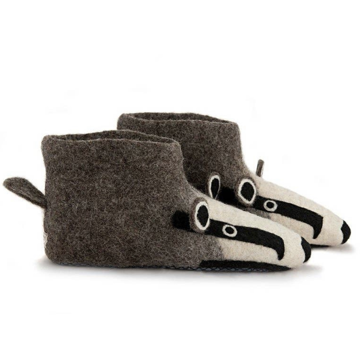 Håndlagede tøfler av organisk, hudvennlig filt og håndsydde anti-skli såler.