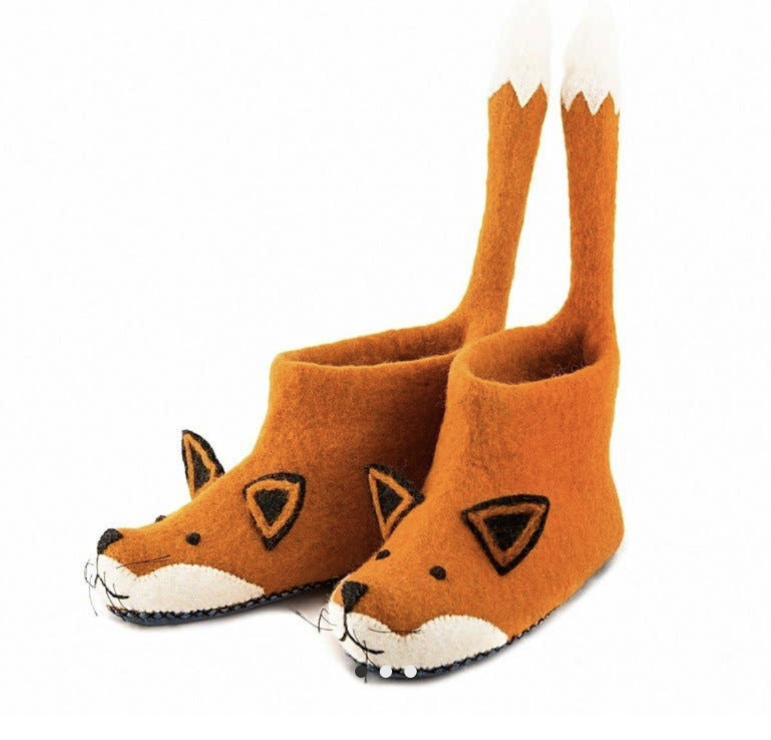 Håndlagede tøfler av organisk, hudvennlig filt og håndsydde anti-skli såler.