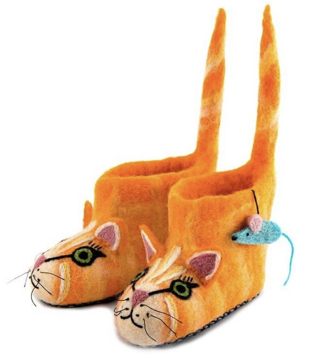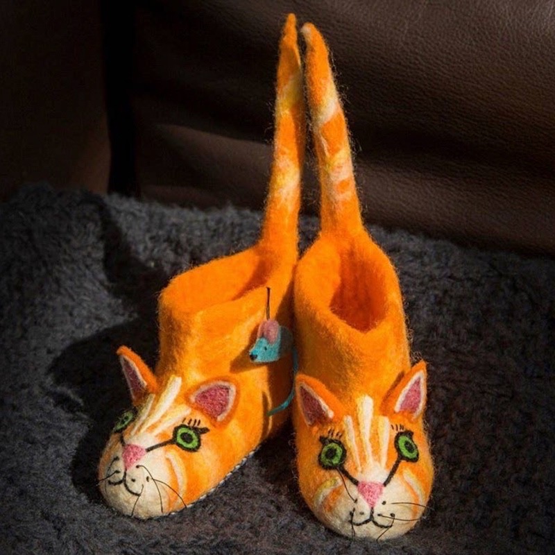 Håndlagede tøfler av organisk, hudvennlig filt og håndsydde anti-skli såler.