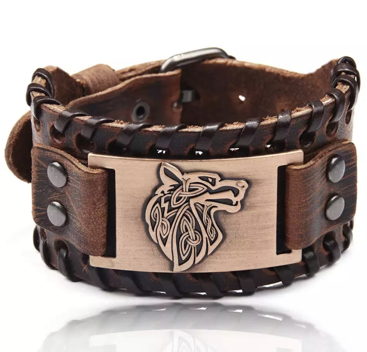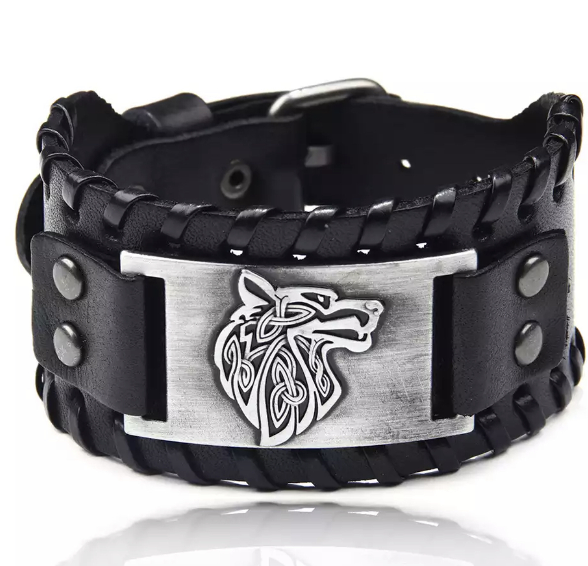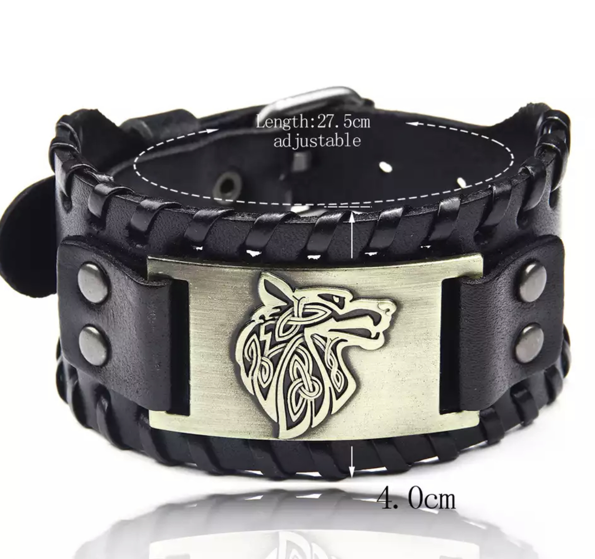 Vikingarmbånd i ekte skinn med metallplate – Fenris